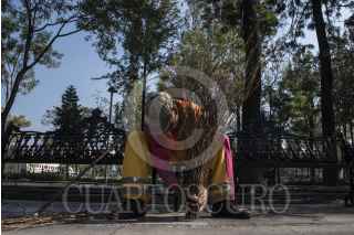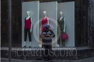 CIUDAD DE MÉXICO, 19ABRIL2017.- Un oficial se entretiene utilizando dos celulares mientras realiza su guardia en la zona centro. FOTO: TERCERO DÍAZ /CUARTOSCURO.COM