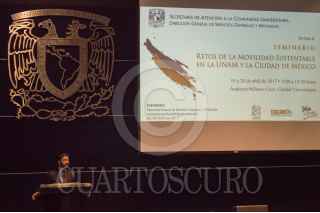 CIUDAD DE MÉXICO, 19ABRIL2017.- José Luis Zuñiga Vázquez, director de movilidad y transporte de de dirección general de transportes y movilidad participó en el seminario Retos de la Movilidad Sustentable en la UNAM y la Ciudad de México, en el auditorio Alfonso Caso en Ciudad Universitaria de la Universidad Nacional Autonóma de México (UNAM). FOTO: SELENE PACHECO /CUARTOSCURO.COM