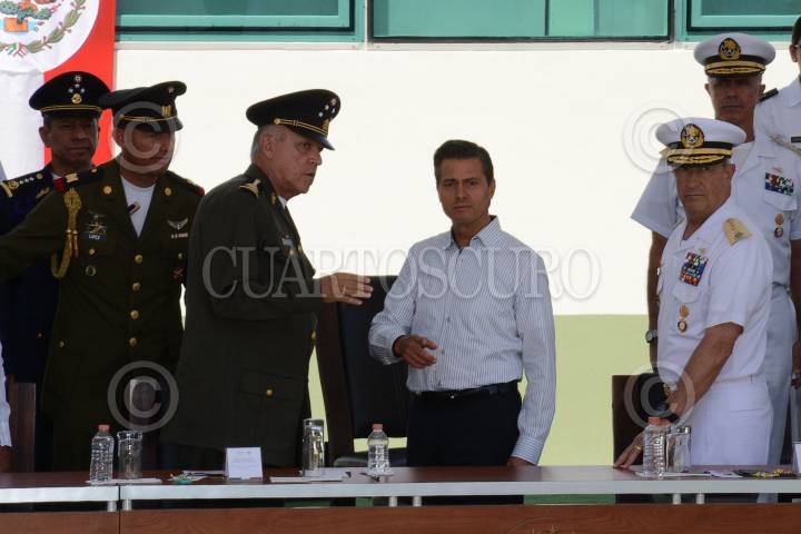 MONTERREY, NUEVO LEÓN, 19ABRIL2017.- Salvador Cienfuegos, secretario de la Defensa; Enrique Peña Nieto, Presidente de México, y Vidal Francisco Soberón Sanz, secretaria de la Marina, durante la inauguración del nuevo Hospital Regional Militar de Alta Especialidad, ubicado en la Plaza Monterrey Nuevo León. El hospital beneficiará a más de 95 mil personas, ya sean militares o derechohabientes. FOTO: MARIO JASSO /CUARTOSCURO.COM