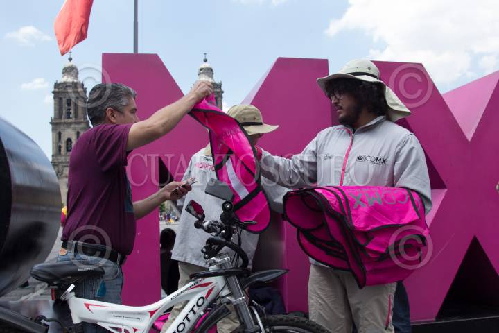 CIUDAD DE MÉXICO, 19ABRIL2017.- Con motivo del Día Mundial de la bicicleta integrantes de la secretaria de Medio Ambiente de la Ciudad de México repartieron chalecos reflejantes y placas del mismo material para la seguridad de los ciclistas capitalinos. FOTO: GALO CAÑAS /CUARTOSCURO.COM