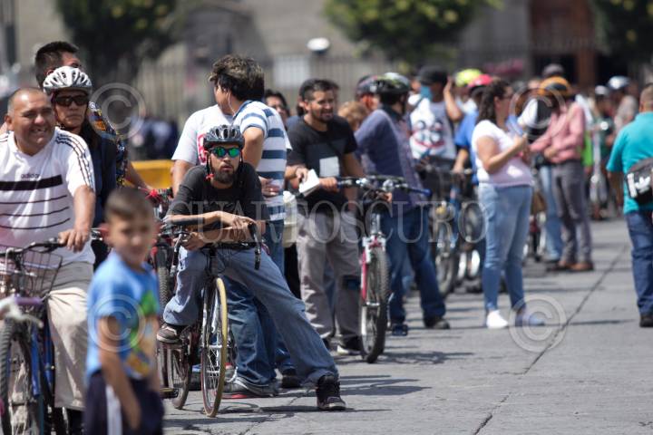 CIUDAD DE MÉXICO, 19ABRIL2017.- Con motivo del Día Mundial de la bicicleta integrantes de la secretaria de Medio Ambiente de la Ciudad de México repartieron chalecos reflejantes y placas del mismo material para la seguridad de los ciclistas capitalinos. FOTO: GALO CAÑAS /CUARTOSCURO.COM