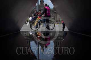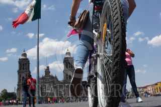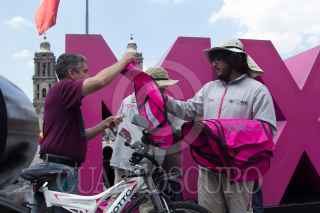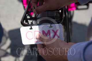 CIUDAD DE MÉXICO, 19ABRIL2017.- Con motivo del Día Mundial de la bicicleta integrantes de la secretaria de Medio Ambiente de la Ciudad de México repartieron chalecos reflejantes y placas del mismo material para la seguridad de los ciclistas capitalinos. FOTO: GALO CAÑAS /CUARTOSCURO.COM