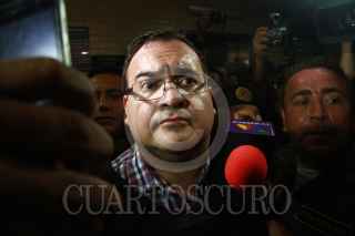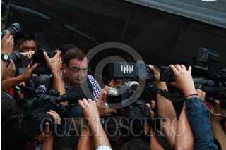 GUATEMALA, GUATEMALA, 19ABRIL2017.- Javier Duarte de Ochoa, ex Gobernador del estado de Veracruz y quien se encontraba prófugo de la justicia mexicana acusado de corrupción, compareció ante el Juez Adan Garcia, en el Juzgado Quinto del Ramo Penal de Narcoactividad y Delitos contra el Ambiente del Organismo Judicial, que se realizó en el sótano de la torre de tribunales del Palacio de Justicia. FOTO: WILLIAM GULARTE /CUARTOSCURO.COM