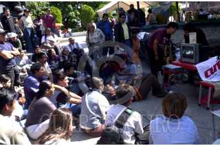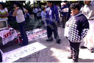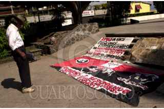 Cuernavaca, Morelos25ENE2004.- Un anciano observa las pancartas hechas por la Central Unitaria de Trabajadores de Morelos en apoyo a los pobladores de Tlalnepantla. FOTO: Eunice Adorno/CUARTOSCURO:COM