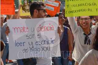 CIUDAD DE MÉXICO, 22ABRIL2017.- Estudiantes e investigadores de diversas universidades del país, principalmente del nivel de posgrado, participaron en la “Marcha por la ciencia” la cual se efectúa en más de 100 países. Desde el ángel de la independencia hasta el zócalo capitalino, se hizo un llamado al gobierno federal y a la sociedad para reconocer la importancia que requiere la inversión en la ciencia, para el desarrollo del país en diversos ámbitos. FOTO: MARIO JASSO /CUARTOSCURO.COM