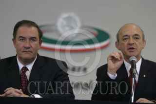 Juriquilla, Querétaro 05 Febrero 2004.- Francisco Garrido Patrón, gobernador de Querétaro y Fernando Elizondo representante del gobierno federal en la CNH ofrecieron una conferencia de prensa para informar de la agenda de la convencion hacendaria. FOTO: Nelly Salas/CUARTOSCURO.COM