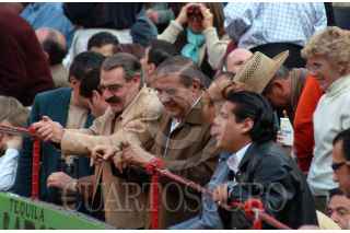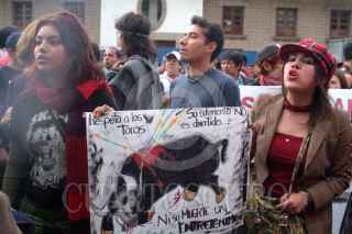 México, D. F. 05 FEBRERO 2004.- Estudiantes e integrantes de organizaciones civiles manifestaron su descontento hacia los que asisten a la fiesta brava del LVIII aniversario de la Plaza de Toros México, pues lo catalogan como "un acto de barbarie". FOTO: Iván Stephens/CAURTOSCURO.COM