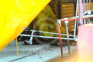 CIUDAD DE MÉXICO, 24ABRIL2017.- Un hombre de aproximadamente 40 años decidió quitarse la vida colgándose de un puesto tubular, ubicado en Calzada Zaragoza a la altura del Metro Moctezuma. En el afán de los policías por evitar la labor periodística dejaron caer el cuerpo al suelo, esto al estar manipulando lonas para evitar que los reporteros vieran. FOTO: LUIS CARBAYO /CUARTOSCURO.COM