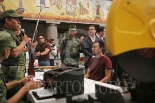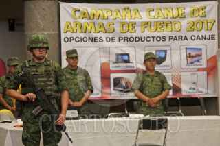 TONALA, JALISCO. 24ABRIL2017.- Jorge Aristóteles Sandoval Díaz, Gobernador del Estado, encabezo el inicio de la “Campaña canje de armas de fuego 2017” en el patio central de la Presidencia Municipal de Tonalá, dicha campaña consiste en canjear armas de fuego por electrodomésticos o aparatos eléctricos y de acuerdo al calibre se definirá el valor y aparato a canjear, el horario de atención será de 8:00 a 12:00 horas en seis módulos itinerantes en el municipio y se destaco que tanto como la Secretaria de la Defensa Nacional (SEDENA), en conjunto con la Policía de Tonalá forman parte de la estrategia de prevención al delito en el municipio. FOTO : FERNANDO CARRANZA GARCIA / CUARTOSCURO.COM