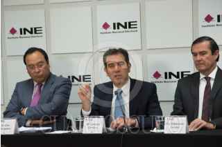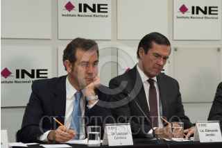 CIUDAD DE MÉXICO, 24ABRIL2017.- Lorenzo Córdova, Consejero Presidente del Instituto Nacional Electoral (INE), Diana P. Ravel, y Ciro Murayama, ofrecieron una conferencia de prensa para hablar acerca del presupuesto y ahorro económico del INE. FOTO: TERCERO DÍAZ /CUARTOSCURO.COM