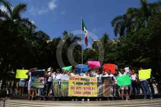 VERACRUZ, VERACRUZ, 24ABRIL2017.- Familiares, compañeros y amigos de los 2 trabajadores de TAMSA fallecidos hace 1 mes en la trifulca entre simpatizantes de los 2 líderes sindicales, se manifestaron en el zócalo de la ciudad para exigir justicia y que se esclarezca el caso. FOTO: ILSE HUESCA /CUARTOSCURO.COM