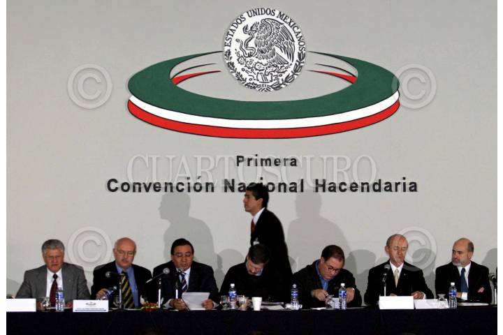 Juriquilla, Queretaro 06 Febrero 2004.- Gustavo Madero, presidente de la comisión de hacienda en la cámara de diputados, durante la ponenecia de Juan Carlos Romero Hicks, gobernador de Guanajuato. FOTO: Nelly Salas/CUARTOSCURO.COM