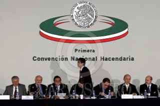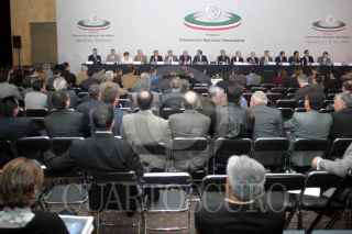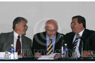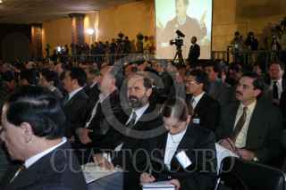 Juriquilla, Queretaro 06 Febrero 2004.- Gustavo Madero, presidente de la comisión de hacienda en la cámara de diputados, durante la ponenecia de Juan Carlos Romero Hicks, gobernador de Guanajuato. FOTO: Nelly Salas/CUARTOSCURO.COM