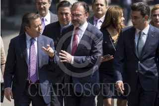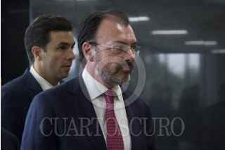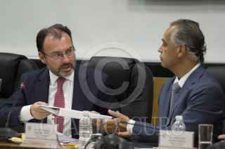CIUDAD DE MÉXICO, 25ABRIL2107.- El canciller Luis Videgaray Caso, y Víctor Manuel Giorgana Jiménez, presidente de la Comisión de Relaciones Exteriores, durante la comparecencia del secretario ante la comisión de Relaciones Exteriores del recinto. Durante la reunión se le cuestionaron y preguntaron diversas circunstancias donde el tema del muro del presidente estadounidense Donald Trump resonó en más de una ocasión. FOTO: GALO CAÑAS /CUARTOSCURO.COM