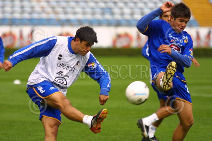 Monterrey, Nuevo León 06 Febrero 2004.- Marco Antonio Ruíz manda un pase durante el entrenamiento matutino, previo a encuentro de este sábado frente a Querétaro. FOTO: Jorge López/CUARTOSCURO.COM