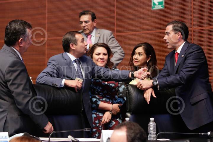 CIUDAD DE MÉXICO, 25ABRIL2017.- Los coordinadores Emilio Gamboa (PRI), y Fernando Herrera (PAN), en la sesión de la Cámara Alta. FOTO: SENADO /CUARTOSCURO.COM