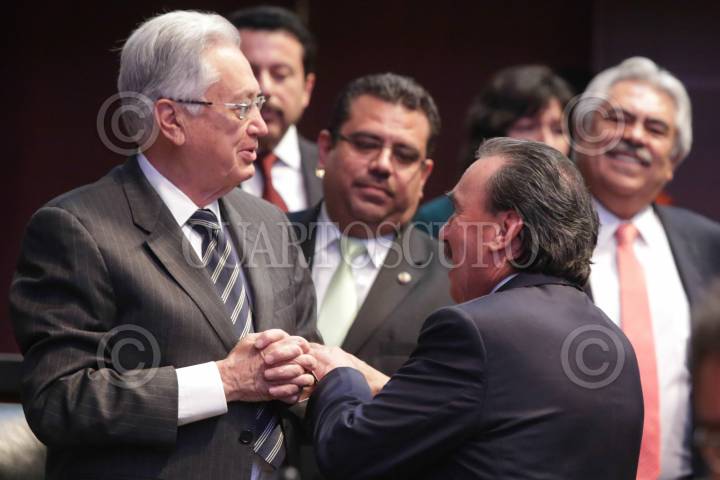 CIUDAD DE MÉXICO, 25ABRIL2017.- Los coordinadores Emilio Gamboa (PRI), y Fernando Herrera (PAN), en la sesión de la Cámara Alta. FOTO: SENADO /CUARTOSCURO.COM