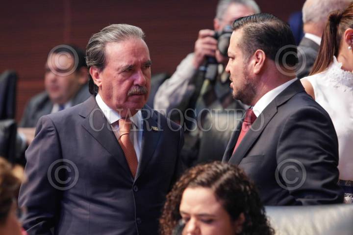 CIUDAD DE MÉXICO, 25ABRIL2017.- Los coordinadores Emilio Gamboa (PRI), y Fernando Herrera (PAN), en la sesión de la Cámara Alta. FOTO: SENADO /CUARTOSCURO.COM