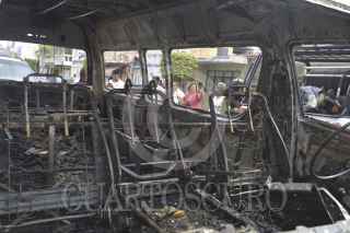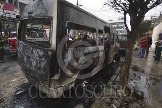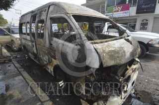 CHILPANCINGO, GUERRERO.25ABRIL2017.-Una camioneta del transporte público se incendió en la avenida Juan Ruiz de Alarcón, a la altura del barrio de San Francisco, aparentemente el incendio fue por un corto circuito. FOTO: JOSÉ I. HERNÁNDEZ /CUARTOSCURO.COM