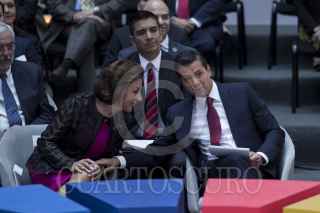 CIUDAD DE MÉXICO, 26ABRIL2017.- Guadalupe Murguia, presidente de la Cámara de Diputados; el presidente Enrique Peña nieto, y Blanca Alcará vicepresidenta y representante del presidente de la Cámara de Senadores, durante la instalación del Consejo Nacional de la agenda 2030 para el desarrollo sostenible a nivel nacional. FOTO: GALO CAÑAS /CUARTOSCURO.COM