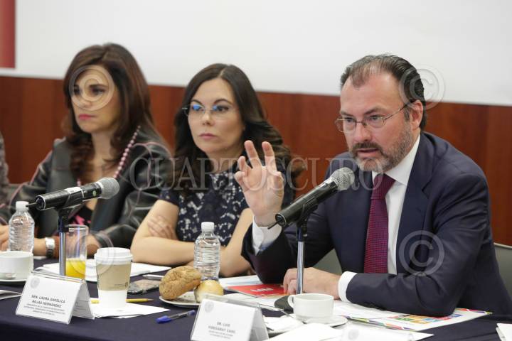 CIUDAD DE MÉXICO, 26ABRIL2017.- Luis Videgaray, secretario de Hacienda y Crédito Público, participó en la reunión del Grupo de Trabajo para el seguimiento legislativo de los Objetivos de Desarrollo Sostenible, a la que convoca la presidenta de la Comisión de Relaciones Exteriores Organismos Internacionales, senadora Laura Angélica Rojas Hernández. FOTO: SENADO /CUARTOSCURO.COM