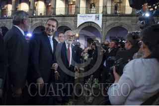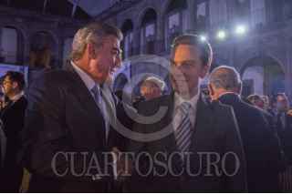 CIUDAD DE MÉXICO, 26ABRIL2017.- Antonio Gali, gobernador del estado de Puebla y Manuel Velazco, gobernador de Chiapas, durante la presentación del libro "La fuerza del cambio" de Rafael Moreno Valle, ex gobernador del estado de Puebla en el Colegio de San Ignacio de Loyola. FOTO: SELENE PACHECO /CUARTOSCURO.COM