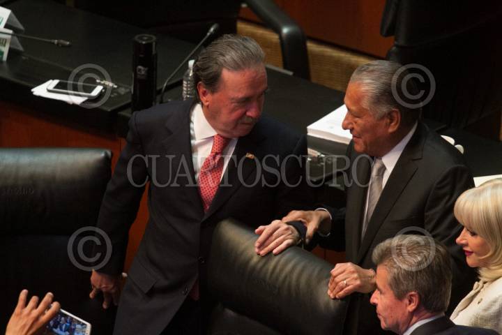 CIUDAD DE MÉXICO, 27ABRIL2017.- El senador Carlos Romero Deschamps felicita al nuevo embajador de México en Costa Rica, Melquíades Morales, en el Senado. FOTO: MOISÉS PABLO /CUARTOSCURO.COM