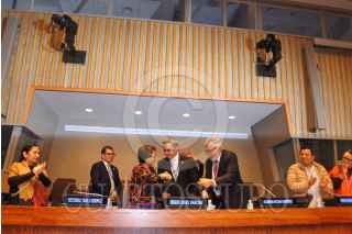 NUEVA YORK, ESTADOS UNIDOS, 27ABRIL2017.- Miguel Ángel Mancera, Jefe de Gobierno, acudió ante la Organización de Naciones Unidas a a exponer los avances de la Constitución capitalina. El mandatario resaltó que la Carta Magna de la Ciudad de México puede ser considerada como la Capital Indígena de América, tan solo por el número de personas que se auto-adscriben en este grupo, 784 mil, es decir, 8.8 por ciento del total de la población. Además se hablan 55 lenguas indígenas, con más de 129 mil hablantes. FOTO: GOBIERNO CDMX /CUARTOSCURO.COM