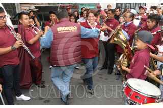CIUDAD NEZA, ESTADO DE MÉXICO, 27ABRIL2017.- Delfina Gómez Alvarez ,candidata de MORENA, bailo al son de una banda oaxaqueña almtermino de su mitin electoral llevado acabo Emma colonia metropolitana. FOTO: SAÚL LÓPEZ /CUARTOSCURO.COM
