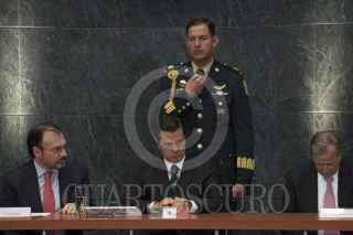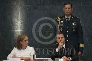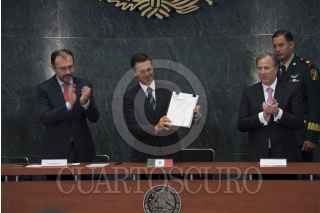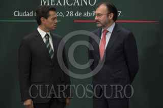CIUDAD DE MÉXICO, 28ABRIL2017.- Enrique Peña nieto, presidente de la República, Luis Videgaray, secretario de Relaciones Exteriores, y José Antonio Meade Kuribreña, secretario de Hacienda y Crédito Público, durante la ceremonia de Reconocimiento al Servicio Exterior Mexicano. FOTO: TERCERO DÍAZ /CUARTOSCURO.COM