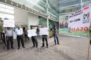 TOLUCA, ESTADO DE MÉXICO, 28ABRIL2017.- Representantes de transportistas del Chalco acudieron al IEEM a denunciar el uso de firmas de transportistas por parte de Isidro Pastor Medrano para obtener su registro como candidato independiente a la gubernatura del Estado de México. FOTO: ARTEMIO GUERRA BAZ /CUARTOSCURO.COM