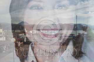 VALLE DE BRAVO, ESTADO DE MÉXICO, 28ABRIL2017.- Una manta con la imagen de Josefina Vázquez Mota, candidata a la Gubernatura del Estado, cubre una vista panorámica de Valle de Bravo, durante un mitin proselitista en este destino turístico. FOTO: MISAEL VALTIERRA /CUARTOSCURO.COM