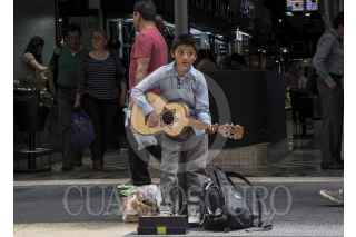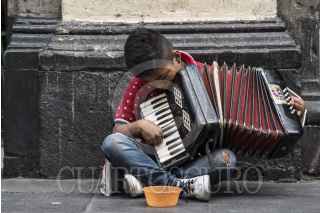 CIUDAD DE MÉXICO, 29ABRIL2017.- A un día de celebrarse el Día del Niño en México, y a pesar de los intentos por garantizar los derechos de los infantes en el país, continúan millones de ellos en condición de pobreza y vulnerabilidad. En la imagen un menor en la calle Madero toca el acordeón a cambio de monedas como forma de sustento. FOTO: TERCERO DÍAZ /CUARTOSCURO.COM