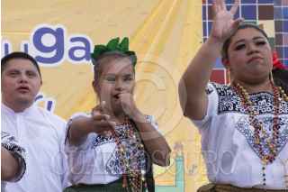 CIUDAD DE MÉXICO, 30ABRIL2017.- El grupo de danza tradicional folklórica “Estrellas con Ángel” conformado por personas menores de edad con síndrome de down, participaron en un espectáculo de cuatro número de danza en la plaza de las artes del Centro Nacional de las Artes (CENART), como parte del festival “Todos a bailar y a danzar”. La participación del grupo es parte del programa “Inclusión de niños con discapacidad a través de los lenguajes artísticas que instrumenta “Alas y Raíces” en Campeche, Yucatán, Quintana Roo, Chiapas, Tabasco y Verazruz. FOTO: MARIO JASSO /CUARTOSCURO.COM