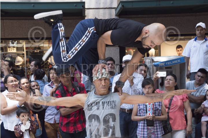 CIUDAD DE MÉXICO, 30ABRIL2017.- Bailadores de brakedance, realizan un espéctaculo ante decenas de transeúntes en el centro histórico. FOTO: TERCERO DÍAZ /CUARTOSCURO.COM