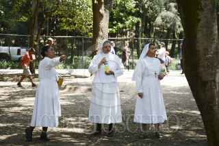 CIUDAD DE MÉXICO, 30ABRIL2017.- Tres monjas realizan un paseo por el bosque de Chapultepec y se rehidratan en un domingo soleado en la Ciudad de México. FOTO: MARIO JASSO /CUARTOSCURO.COM