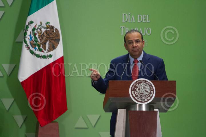 CIUDAD DE MÉXICO, 01MAYO2017.- Alfonso Navarrete Prida, secretario del Trabajo; Carlos Aceves del Olmo, líder del Confederación de Trabajadores de México, y Enrique Peña Nieto, Presidente de México, durante la celebración del Día del Trabajo en la residencia oficial de Los Pinos. FOTO: MOISÉS PABLO /CUARTOSCURO.COM