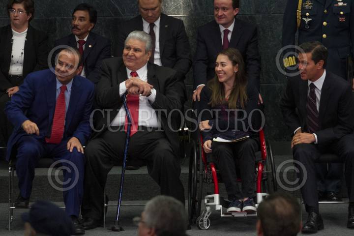 CIUDAD DE MÉXICO, 01MAYO2017.- Alfonso Navarrete Prida, secretario del Trabajo; Carlos Aceves del Olmo, líder del Confederación de Trabajadores de México, y Enrique Peña Nieto, Presidente de México, durante la celebración del Día del Trabajo en la residencia oficial de Los Pinos. FOTO: MOISÉS PABLO /CUARTOSCURO.COM