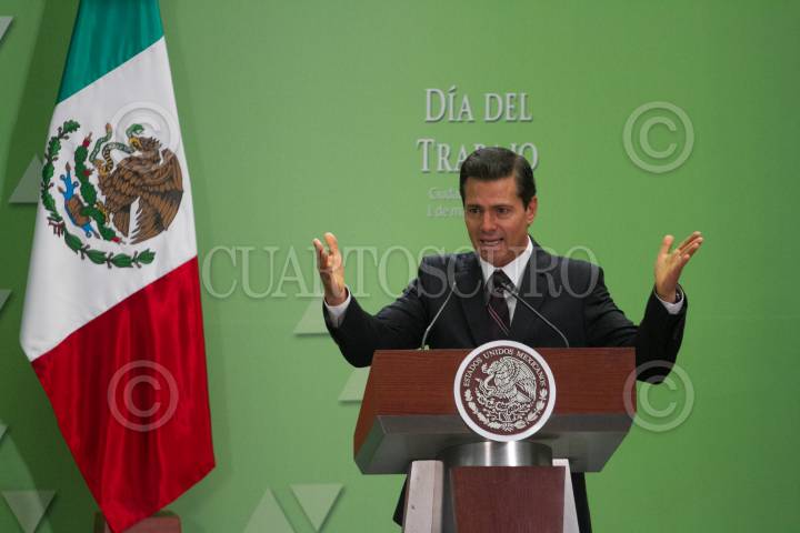 CIUDAD DE MÉXICO, 01MAYO2017.- Alfonso Navarrete Prida, secretario del Trabajo; Carlos Aceves del Olmo, líder del Confederación de Trabajadores de México, y Enrique Peña Nieto, Presidente de México, durante la celebración del Día del Trabajo en la residencia oficial de Los Pinos. FOTO: MOISÉS PABLO /CUARTOSCURO.COM