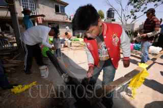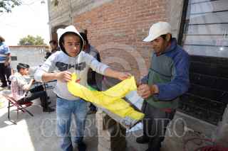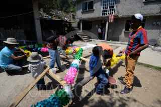 ALMOLOYA DE JUÁREZ, ESTADO DE MÉXICO, 01MAYO2017.- Habitantes de San Mateo Tlachichilpan en Almoloya de Juárez preparan sus arcos de madera adornados con papel china de colores para el festejo de La Santa Cruz, acudiendo 11 cuadrillas a la iglesia principal a instalar sus arcos y que sean bendecidos por el párroco de su localidad. FOTO: ARTEMIO GUERRA BAZ /CUARTOSCURO.COM
