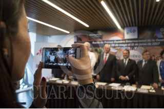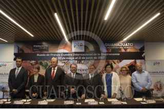 CIUDAD DE MÉXICO, 02MAYO2017.- Autoridades municipales y de turismo del estado de Guanajuato y embajadores presentarón la Cumbre Internacional de la Gatronomía que se llevará a cabo en aquel estado del 30 de mayo al 11 de junio. El evento se realizará de manera simultanea en 9 municipios y tendrá como invitados 59 chef nacionales e internacionales así como más de 40 cocineras y cocineros tradicionales. FOTO: SELENE PACHECO /CUARTOSCURO.COM