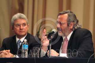 México, D. F. 27 FEBRERO 2004.- Fue inaugurado por el oficial mayor de educación, Francisco Medellín, el encuentro internacional de educación en el museo de Antropología e Historia. En la gráfica Francisco Medellín, (oficial mayor de educación) y Fernando García. FOTO: Iván Stephens/CUARTOSCURO.COM