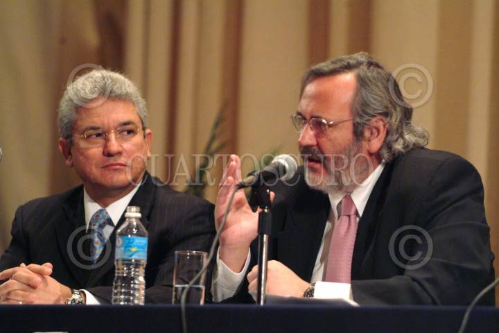 México, D. F. 27 FEBRERO 2004.- Fue inaugurado por el oficial mayor de educación, Francisco Medellín, el encuentro internacional de educación en el museo de Antropología e Historia. En la gráfica Francisco Medellín, (oficial mayor de educación) y Fernando García. FOTO: Iván Stephens/CUARTOSCURO.COM