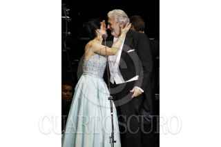 PUEBLA, PUEBLA, 02MAYO2017.- El tenor Plácido Domingo acompañado por la soprano Rebeca Olvera durante el concierto en beneficio de la Cruz Roja en el centro de espectáculos Acrópolis Puebla. FOTO: HILDA RÍOS/ /CUARTOSCURO.COM