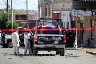 CIUDAD JUÁREZ, CHIHUAHUA, 03MAYO2017.- Esta mañana acribillaron a tres policías; uno resultó muerto y otros dos heridos de gravedad en la colonia Bellavista. El hecho ocurrió en el cruce de avenida 16 de Septiembre y calle Altamirano, muy cerca de la estación Distrito Universidad. FOTO: NACHO RUIZ / CUARTOSCURO.COM