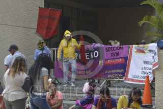 CHILPANCINGO, GUERRERO, 03MAYO2017.- Integrantes de la Coordinadora Estatal de Trabajadores de la Educación en Guerrero (Ceteg) e integrantes de la sección 18 del Sindicato Único de Servidores Públicos del Estado de Guerrero (Suspeg) tomaron el edificio Juan Álvarez de Finanzas del Gobierno del Estado, para repudiar las reformas estructurales y exigir la presentación con vida de los 43 jóvenes desaparecidos de Ayotzinapa. FOTO: JOSÉ I. HERNÁNDEZ /CUARTOSCURO.COM