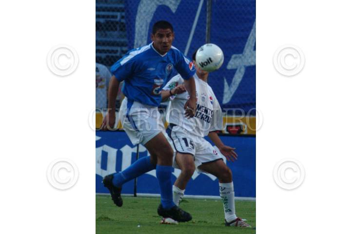 México, D. F. 28FEBRERO2004.- Enrique Meza, director técnico de Cruz Azul, le da instrucciones a Oscar el Conejo Pérez, luego de que por una falla del porteero el marcador le fue adverso a la máquina al inicio del juego ante Pachuca. El marcador final fue de 2 goles a uno favor Pachuca en el estadio Azul. FOTO: Iván Stephens/CUARTOSCURO.COM