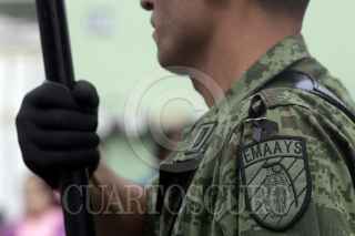 PUEBLA, PUEBLA, 05MAYO2017.- Elementos del ejército portaron moño negro durante el desfile 5 de mayo; tras la muerte de 4 militares en enfrentamiento con huachicoleros la noche de antier. FOTO: HILDA RÍOS /CUARTOSCURO.COM