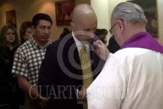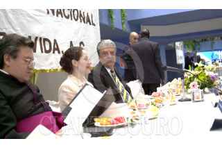 México, D.F. 29 FEBRERO 2004.- Monseñor Jorge Palencia, y los representantes de Provida, Rocio Galvez de Lara, José Barroso Chávez y Jorge Serrano Limón, durante el festejo del XXVI aniversario de la asociación. FOTO: Sandra Perdomo/CUARTOSCURO.COM