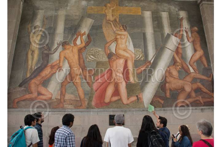 CIUDAD DE MÉXICO, 06MAYO2017.- El Instituto Nacional de Bellas Artes (INBA), realizó un recorrido para conocer la historia del pintor mexicano Ángel Zárraga y su mural “La voluntad de construir”. Dicha obra de arte estaba proyectada a estar conformada por cuatro secciones, sin embargo, Zárraga sólo terminó la primera parte, debido a su muerte el 22 de septiembre de 1946. El mural se encuentra ubicado en la sala de los escritores de la Biblioteca de México. FOTO: MARIO JASSO /CUARTOSCURO.COM
